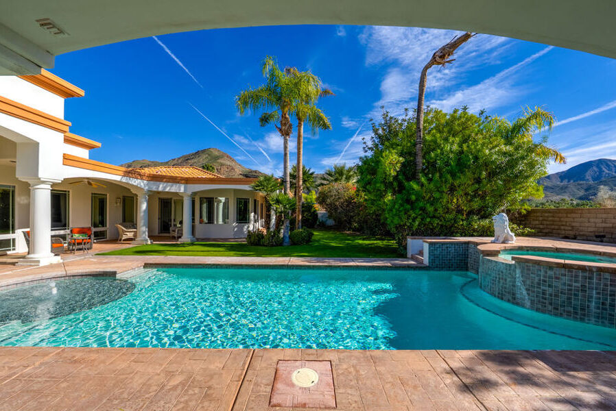 Located at 1019 Andreas Palms Drive, this expansive Mediterranean-style estate is set within the intimate, gated enclave of Andreas Palms in sought-after South Palm Springs. Offered at $2,800,000, the property presents a compelling investor opportunity and a rare chance to own a large-scale residence on fee land you own, surrounded by unobstructed mountain views and a peaceful residential atmosphere.