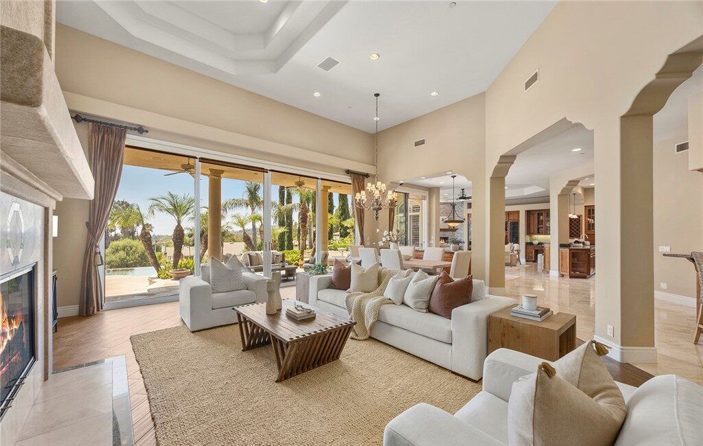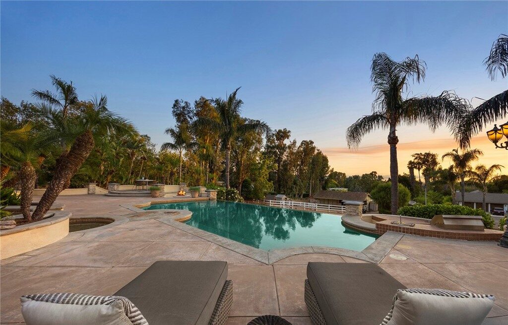 Tucked away at the end of a quiet cul-de-sac behind private gates, this single-story custom estate is a rare blend of luxury, comfort, and California elegance. Every inch has been masterfully designed to feel both refined and welcoming—from the grand entry to the breathtaking outdoor spaces. The residence sits on nearly a full acre of flat, usable land in coveted Orange Park Acres, where privacy meets panoramic sunset views.