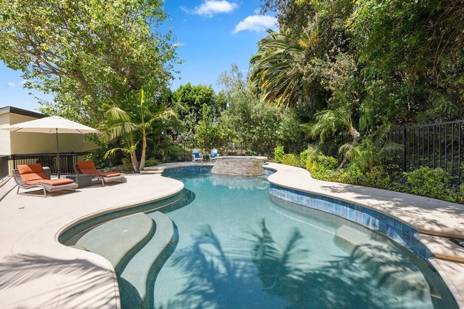 Outside, the estate truly shines. Enjoy California’s indoor-outdoor lifestyle in your own private oasis, complete with a sparkling pool and spa, sunlit patios, sport court, and expansive lawns. Whether you’re entertaining a crowd or enjoying a quiet moment of solitude, this backyard retreat offers endless possibilities.