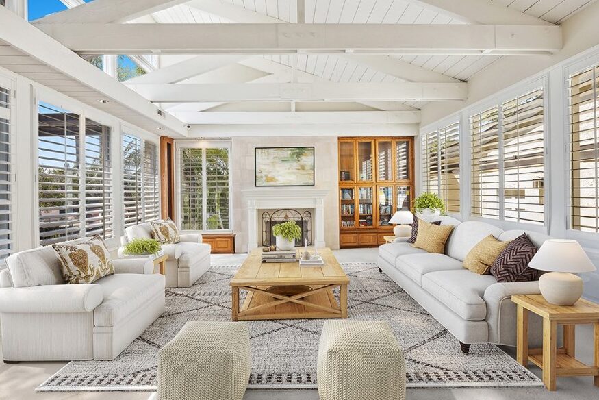 This expansive 5,858-square-foot single-story residence features a custom layout that invites both comfort and grandeur. Soaring open-beam ceilings, multiple skylights, and thoughtfully designed sightlines bring airiness and warmth to every space. Plantation shutters, elegant finishes, and tranquil garden views add layers of character and calm.
