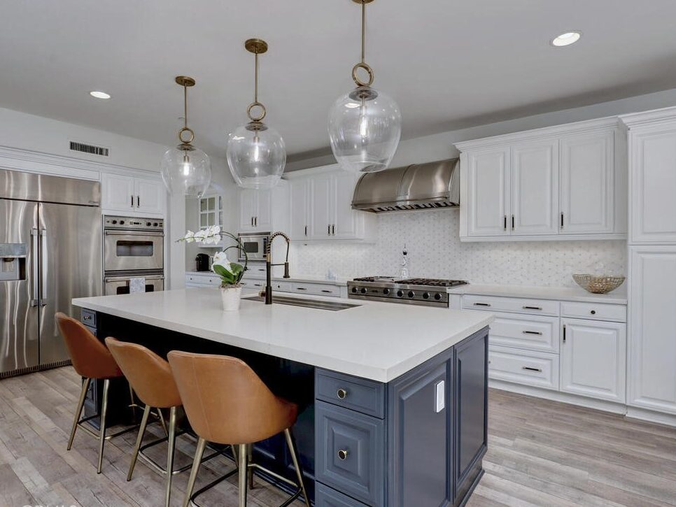 With approximately 4,600 sq. ft. of living space, this 5-bedroom, 5.5-bathroom estate includes a dedicated office, retreat space, and a main floor guest suite. The chef’s kitchen features Viking appliances, double ovens, quartz countertops, and a butler’s pantry with a built-in coffee station. French doors open to a breeze-cooled patio that bridges indoor comfort and outdoor charm.